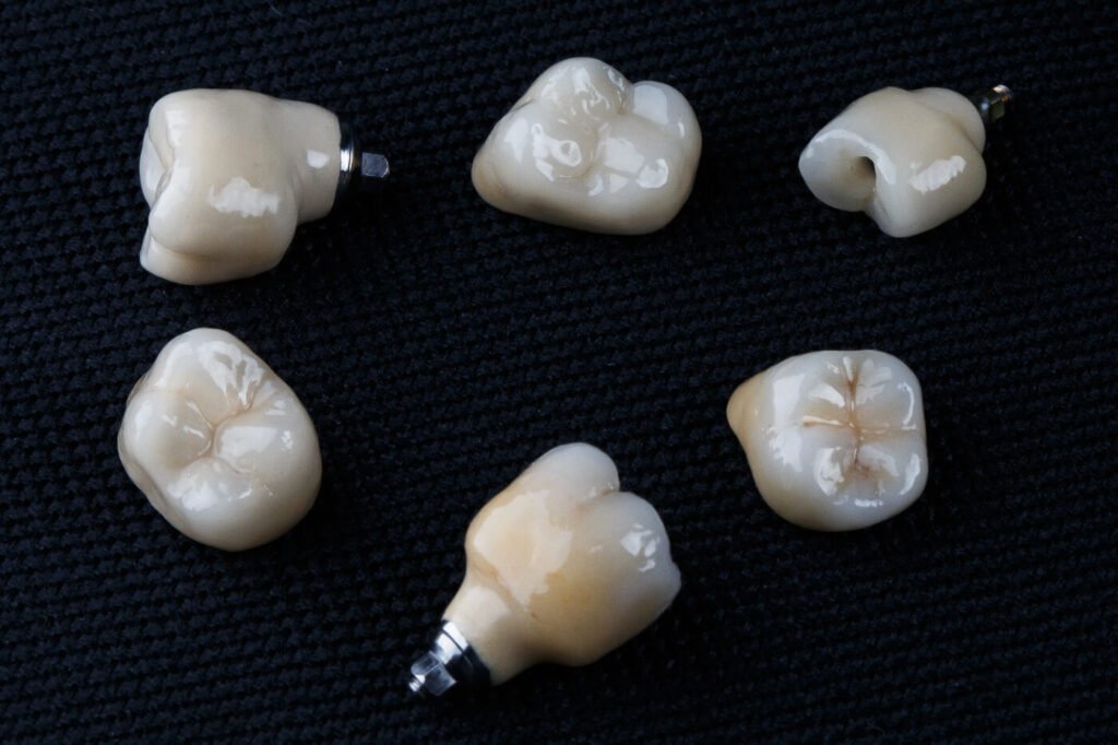 Restoration of single teeth with crowns. The crown can be made of metal-ceramic or zircon and ceramic.
