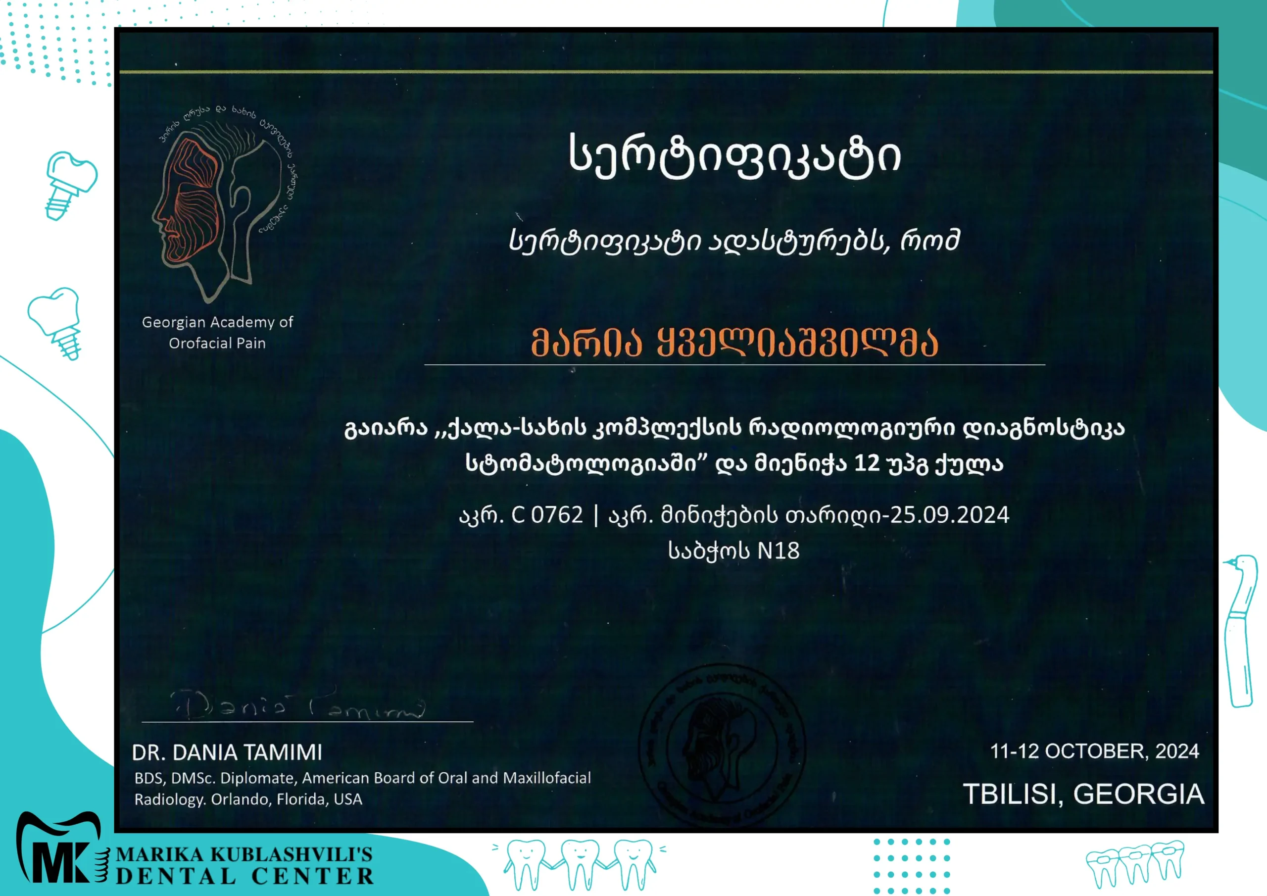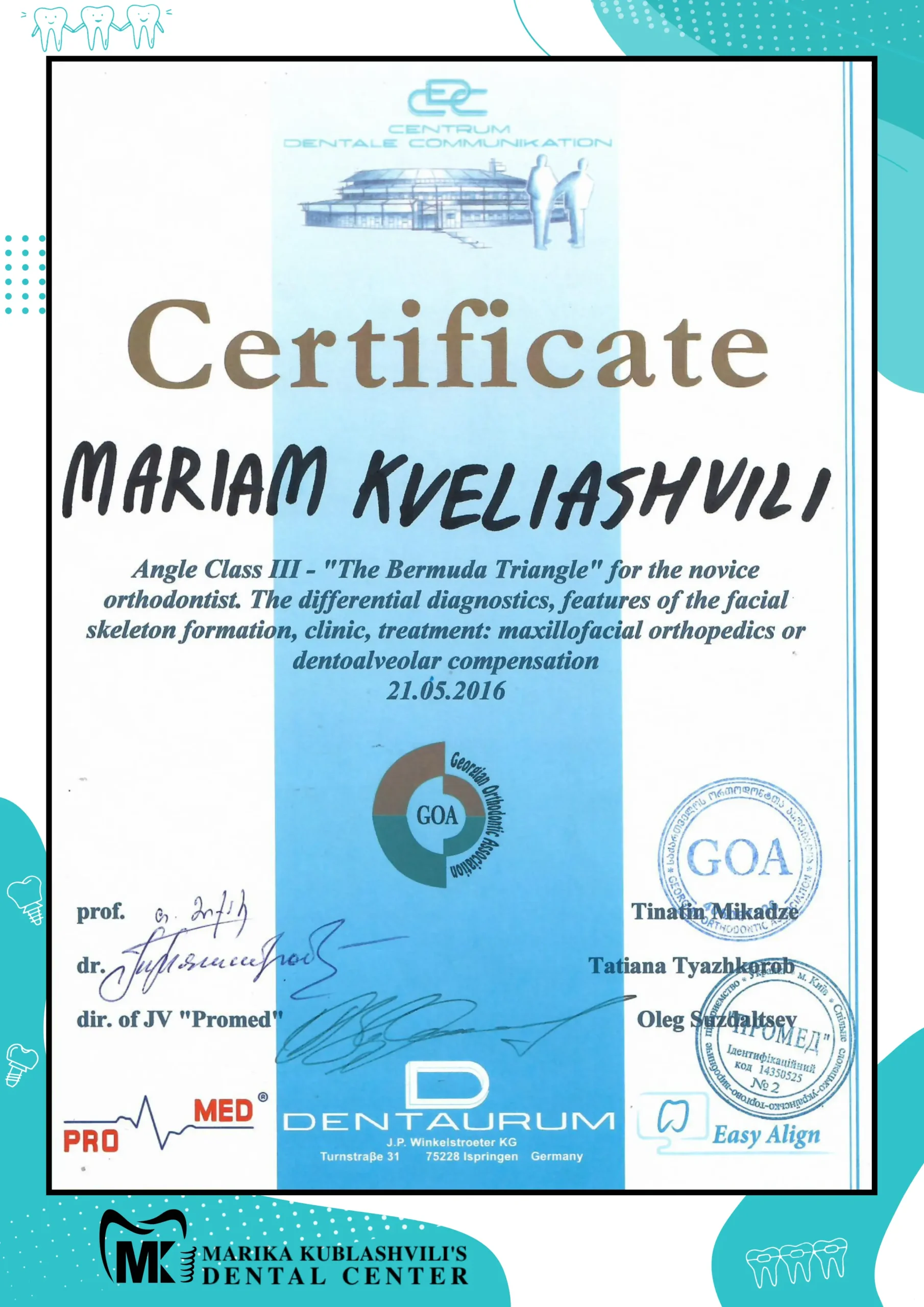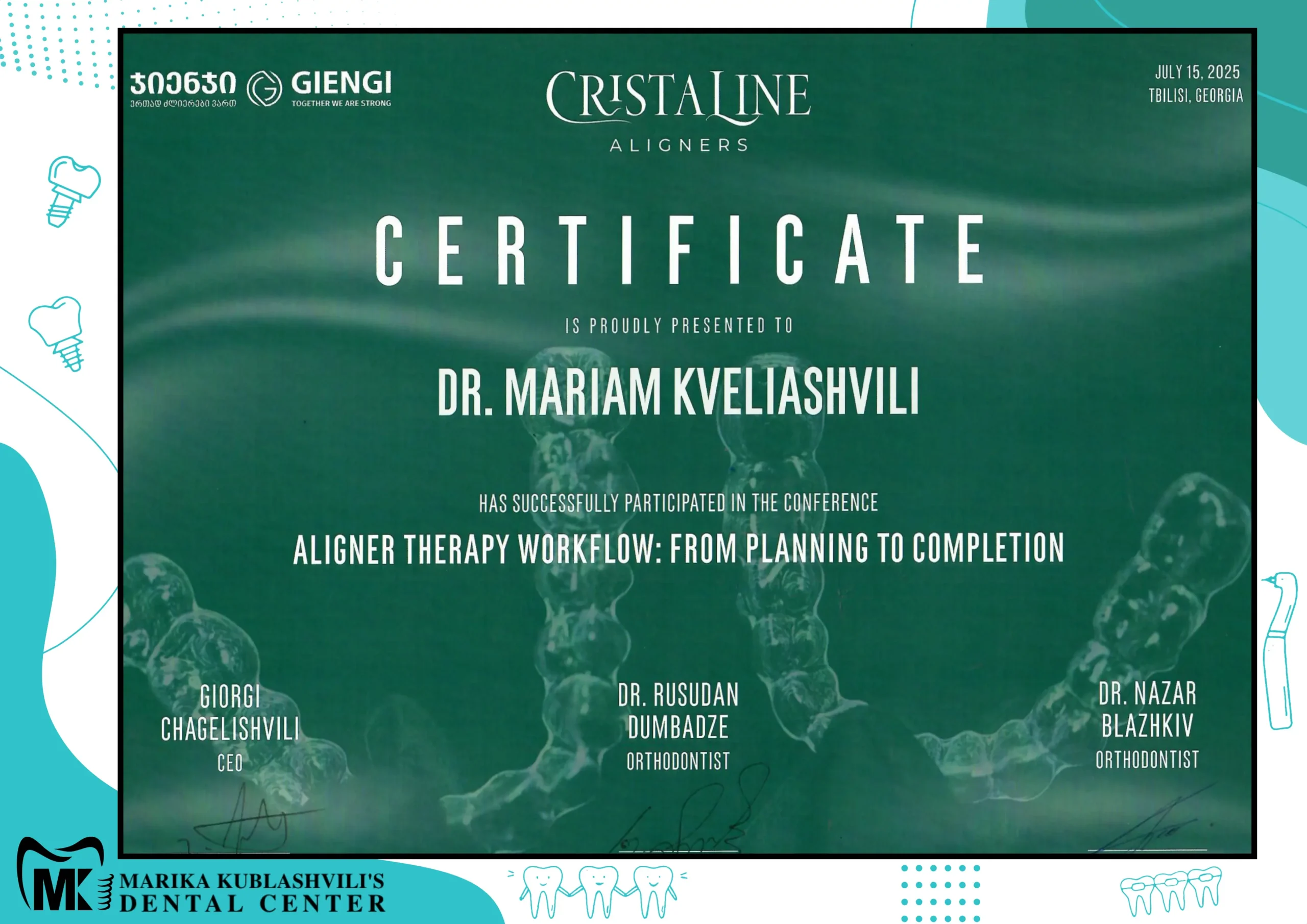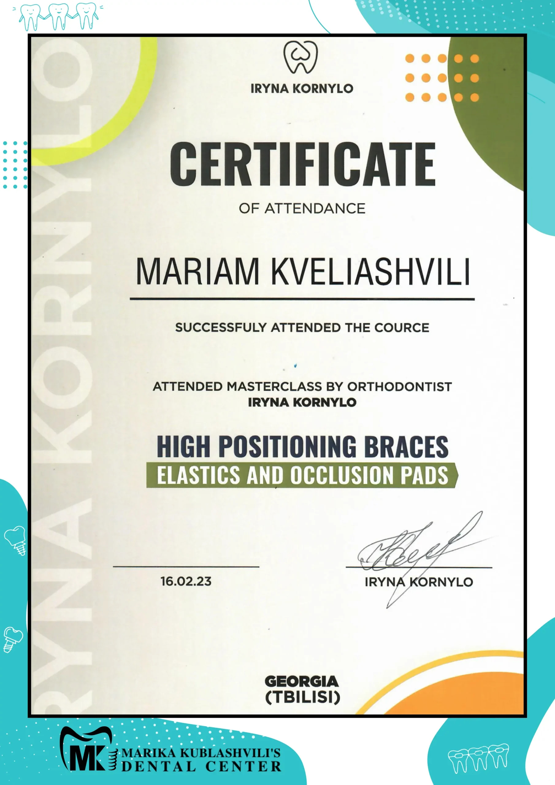 - 2021 – till today Dentist-Orthodontist at Marika Kublashvili Dental Centre