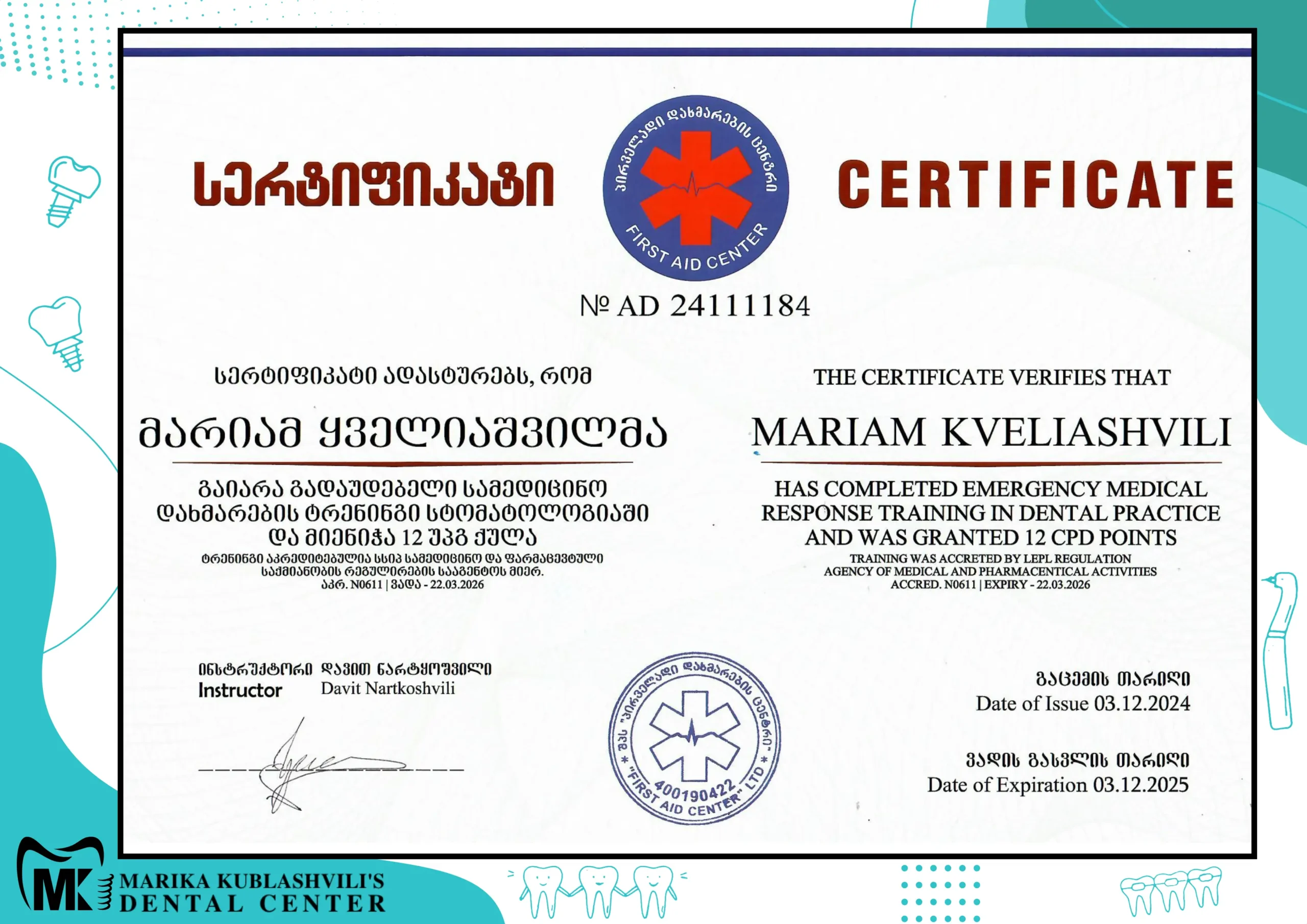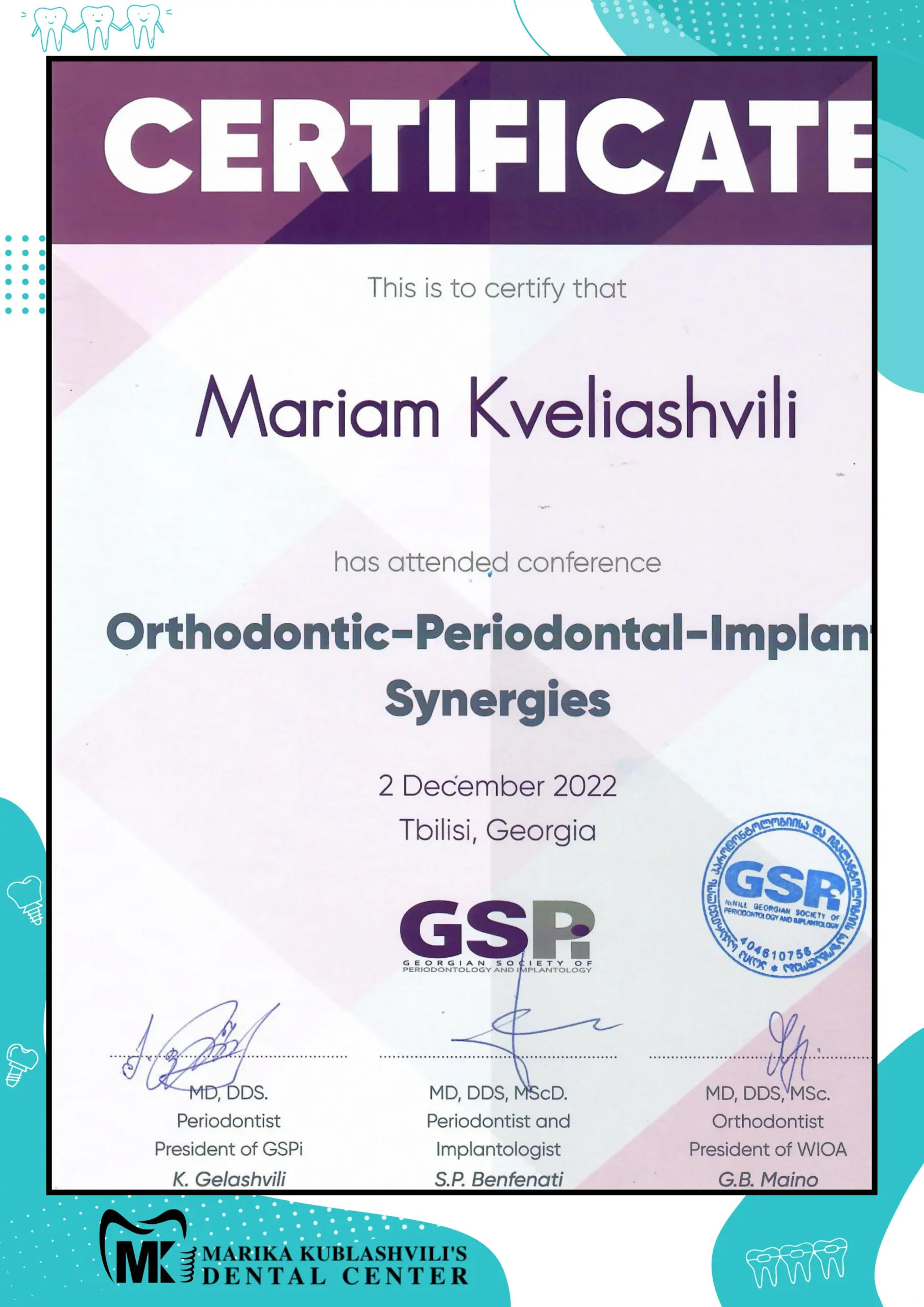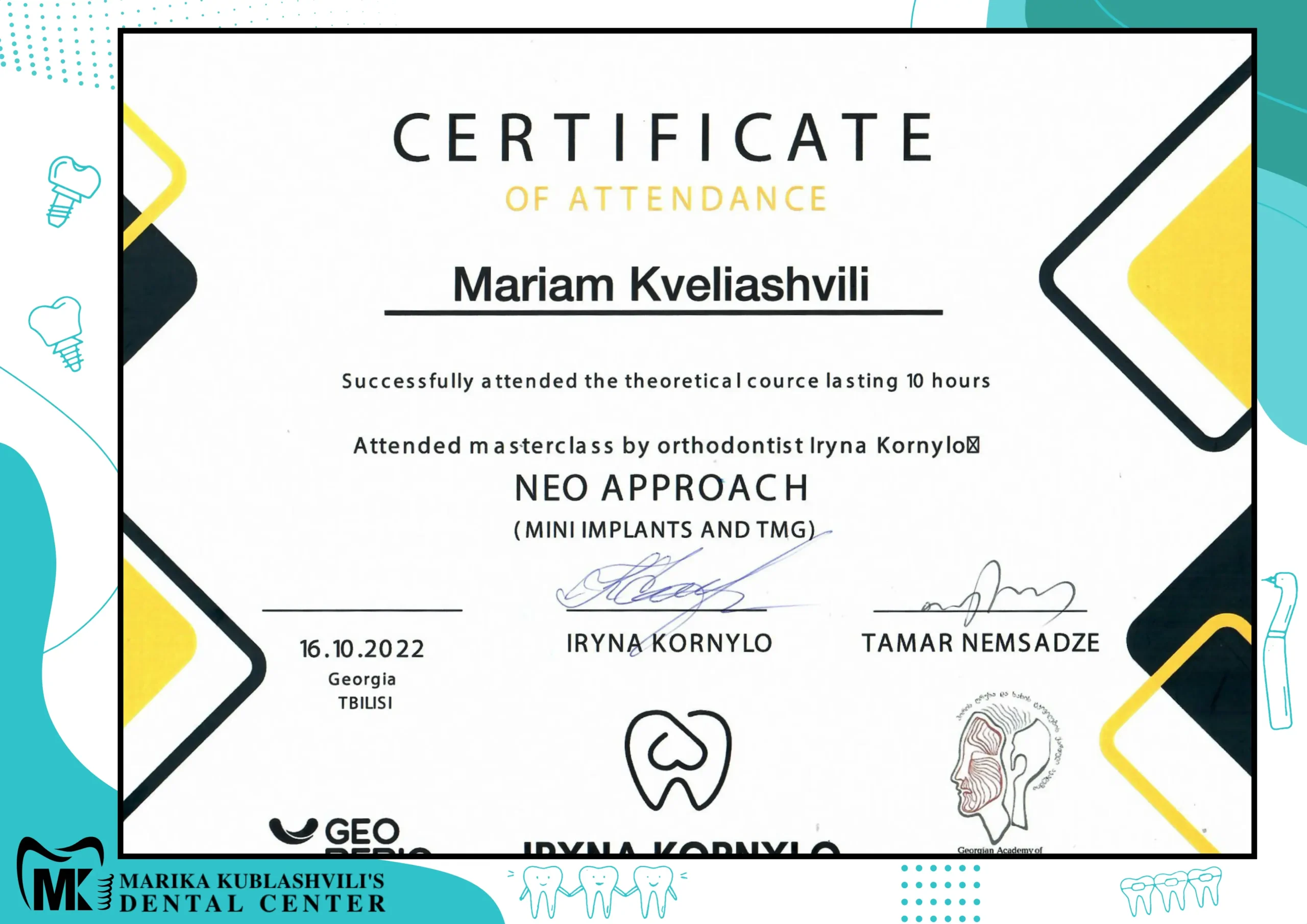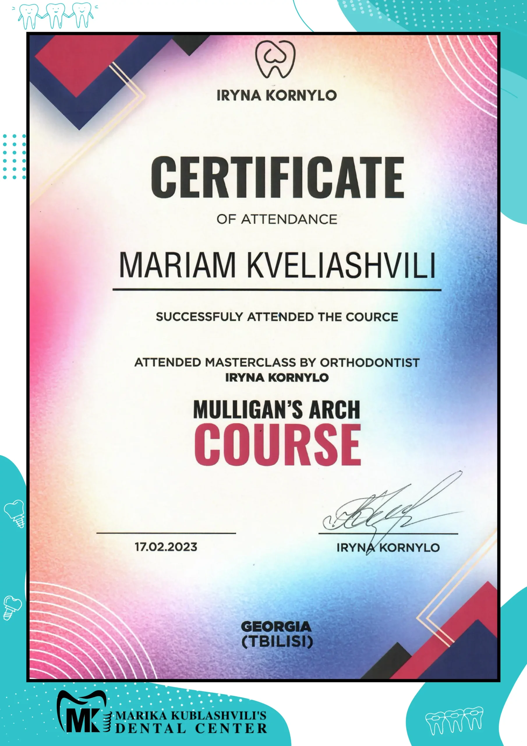 - 2021 – till today Dentist-Orthodontist at Marika Kublashvili Dental Centre