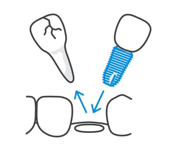 We can restore a lost tooth in one visit. This is done with a special series of implants with more active threads.