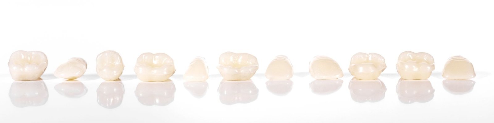 In the manufacture of crowns, a white zirconia framework is covered with porcelain, resulting in teeth with high aesthetic characteristics.